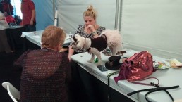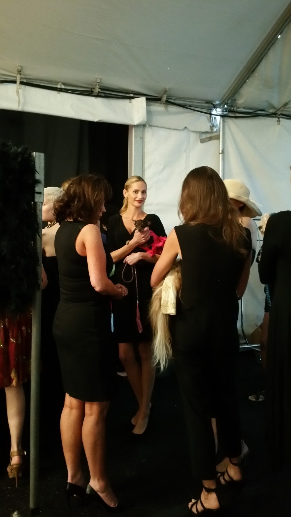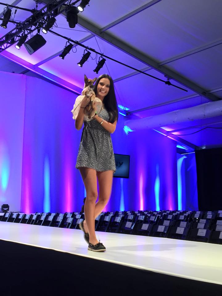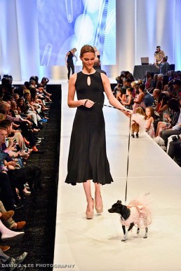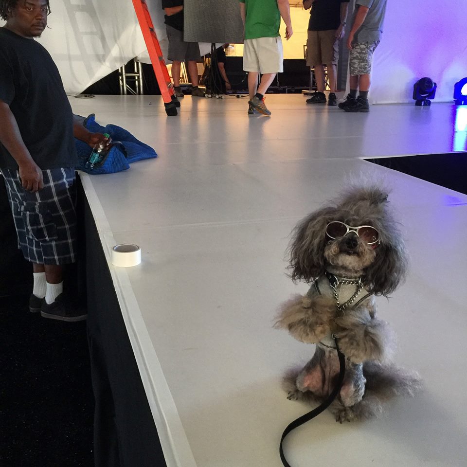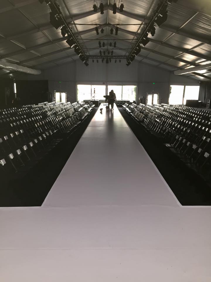 The venue was incredible. A grand entrance, two large beautifully appointed tents, with a garden area in between. And the runway…. 100 feet of glistening white, surrounded by rows and rows of chairs. The dog models, adorable and the human models, gorgeous! The venue seats 1000 — and we practically sold out!